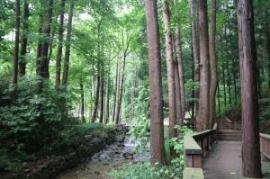 초당림은 4만 5천 그루에 이르는 편백나무가 자리하고 있어 산림욕을 즐기기 좋은 곳입니다. 편백나무 외에도 여러 수목이 어우러져 있고, 아이들이 즐길 수 있는 물놀이장부터 어른들이 천천히 걸을 수 있는 산책길까지 잘 갖추어져 있습니다. 시원한 물과 바람, 울창한 숲이 만드는 분위기 덕분에 공기마저 상쾌하게 느껴지는 곳입니다. 아직 널리 알려지지 않은 편이라 더 편안하게 머물기 좋습니다.