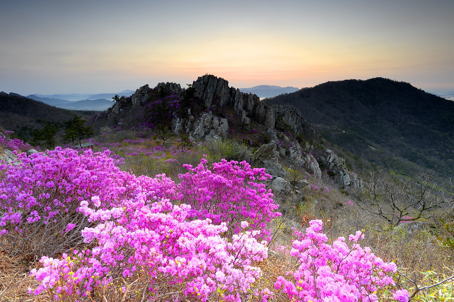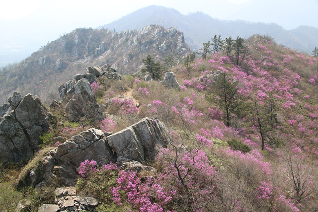 남도를 대표하는 명산 가운데 하나인 주작산은 진달래꽃이 아름답기로 잘 알려진 곳입니다. 해마다 봄이 오면 많은 등산객이 이 풍경을 보기 위해 찾는 장소이기도 합니다. 정상으로 향하는 길에서는 여러 종류의 나무를 감상할 수 있고, 특히 양옆으로 빽빽하게 솟은 잣나무 풍경이 인상적으로 다가옵니다.